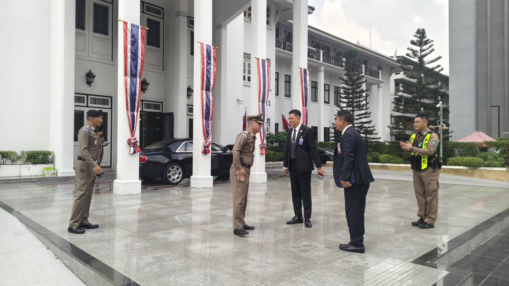 ทั้งกองรักษาการณ์ กองเกียรติยศ และการจราจรภายในสำนักงานตำรวจแห่งชาติ ให้ลงพื้นที่ตรวจตรา ทั้งก่อนประชุม ขณะประชุม จนแล้วเสร็จการประชุม โดยให้เพิ่มความเข้มข้นในการตรวจสอบยาพาหนะ บุคคล และการจราจรภายในสำนักงานตำรวจแห่งชาติ ให้เป็นไปด้วยความเรียบร้อย